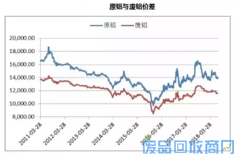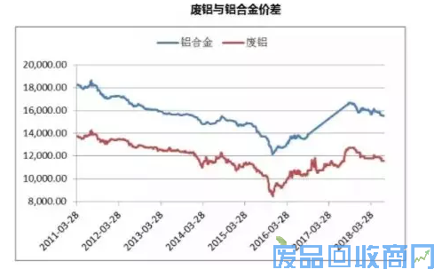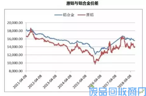 其中,替代关系表现在废铝和原铝都可以用于生产铝材和铝合金。相对于原铝来说,废铝与铝合金锭之间能保持一个稳定的价差。经分析有如下几个原因: