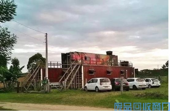 旅舍整体建筑由集装箱组成,共两层。一层是作为青年旅舍使用,二层则是旅舍主人自住房。