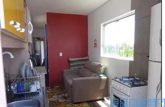 涂彩绘的这层集装箱是旅舍主人自住区,面积虽小,但是厨房、卧室、小客厅一应俱全。