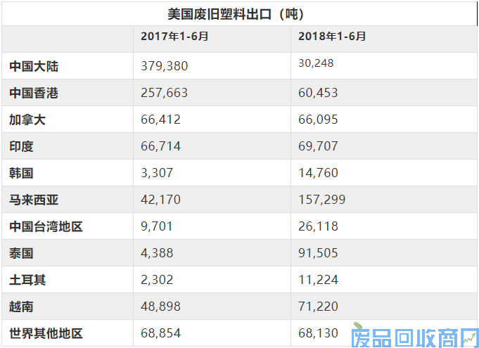美国作为曾经全球的最大废塑料消耗国,在过去的二十年里,一直依靠向中国等东南亚国家输送废塑料来缓解囤积,但随着今年禁废令的施行,美国的废塑料被迫改道。
