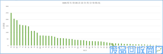 根据ISRI协会美国再生资源企业名录(2018年7月),美国共有近3000家从事废物回收利公司或分支机构是ISRI协会会员,从企业地区分布情况来看,美国再生资源企业具有区域性特点,德克萨斯TX(250家),加利福尼亚CA(205家),俄亥俄州OH(194家),伊利诺斯州IL(160家),佛罗里达州FL,宾夕法尼亚州PA,纽约NY,密歇根州MI,印第安纳州IN,乔治亚州GA,密苏里州MO等沿海、经济、工业发达城市再生资源回收处置利用企业数量较多,以德克萨斯州为例,人口、面积、GDP均居全美第二,出口居全美第一,同时,是美国最大的能源生产州。