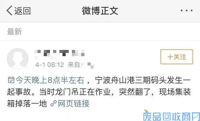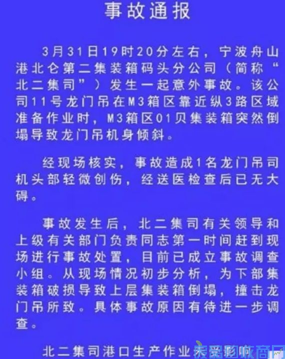 随后,从宁波舟山港了解到,网上流转的视频和图片实属同起事故,也证实该事故发生在宁波舟山港的三期码头。