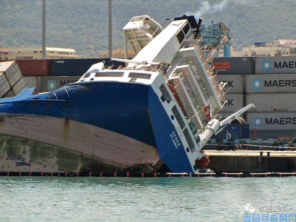 2011年6月,西班牙阿尔赫西拉斯港,一艘名为Deneb的集装箱船在该港装货时侧倾触底,3人在本次事故中受伤。