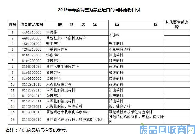 2.2019年年底调整为禁止进口的固体废物目录