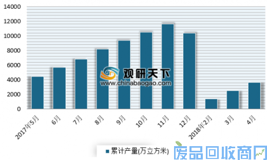 根据数据显示,2018年4月中国金属集装箱产量1111.9万立方米,同比增长117.8%。2018年1-4月中国金属集装箱累计产量3635.4万立方米,累计增长25.2%。
