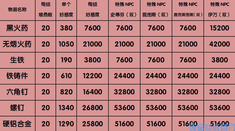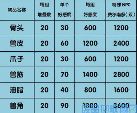 那么今天就给大家看看游戏中各个物资能获得的好感度吧! 有玩家表示自己刷NPC好感度要做食物实在是太累了,而且鬼知道NPC喜欢吃什么,柜子都要装不下了,哪有心情研究食谱给他们送好吃的,家里破铜烂铁一大堆要不然还是塞给NPC当礼物吧!