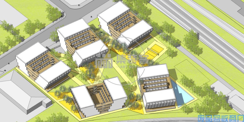 该项目的灵感来自该学校的历史。它产生了一个具有高度社区意识的学生村。这个'学生村'的欢乐和艺术氛围创造了一个真正积极的生活环境。这个村庄被设计成一个小型校园。五座建筑物各自形成一个社区。设计师精心安排在这个公园 创建一个中央空间 - 学生可以在那里聚会交谈,或找到一个安静的地方学习和讨论。学生单元的原型提供符合任何标准的紧凑型公寓。校园公园内的五个街区的城市布局创造了最高质量的住宅环境。这个项目是将艺术和建筑结合在一个鼓励互动的新学生村。
