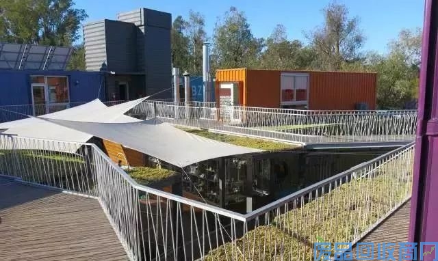 这个集装箱中心是基于可持续发展的理念,使用二手集装箱进行修复,并将可持续发展的想法带入工作的所有细节。这样的设计既可以优化自然资源,减少对环境的影响,又具有建筑上的新颖性和引人注目的特点。