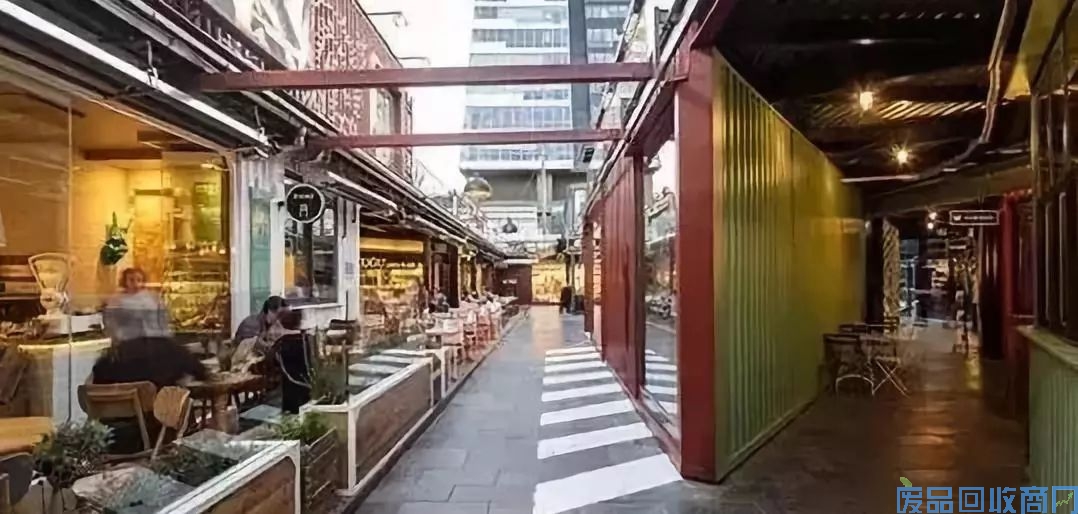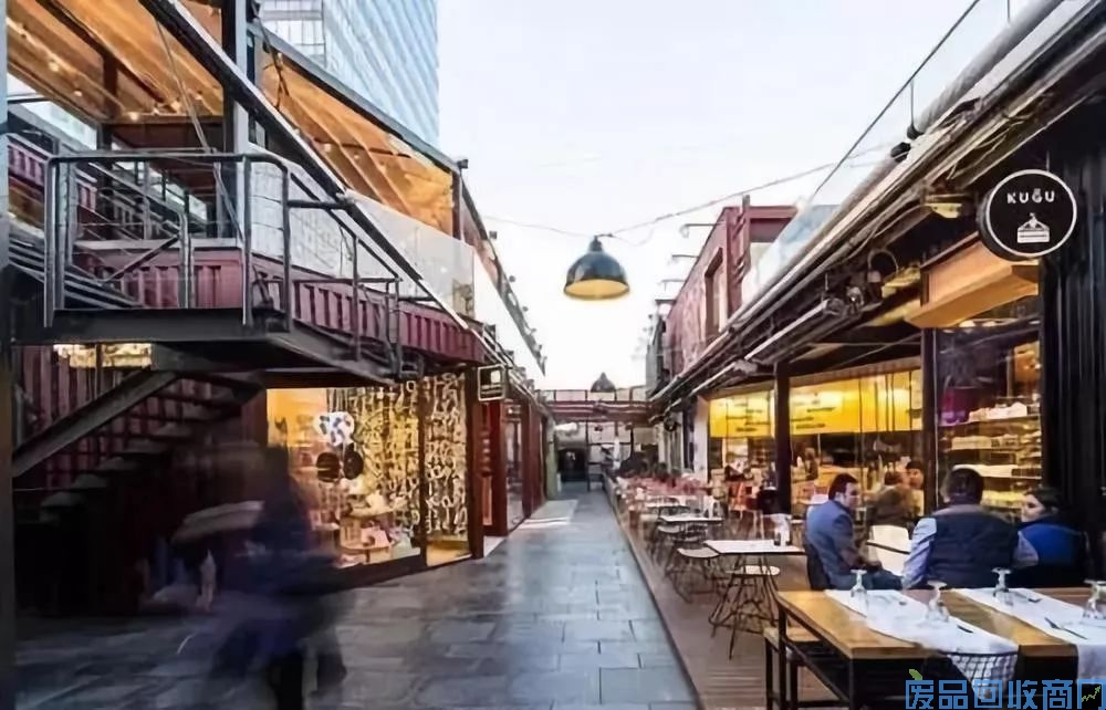 有咖啡店、特色餐厅、潮流服装店、饰品店、旅游纪念品店、苹果专卖店,每一家都是由五颜六色的一至两层的大型集装箱改造而成。