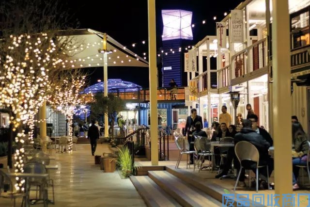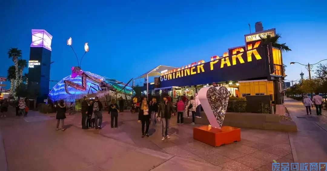 DowntownContainer Park位于拉斯维加斯的Fremont大街,是由 43 个被重新改造和利用的集装箱组建而成的公园商业。