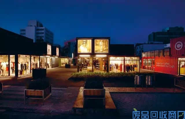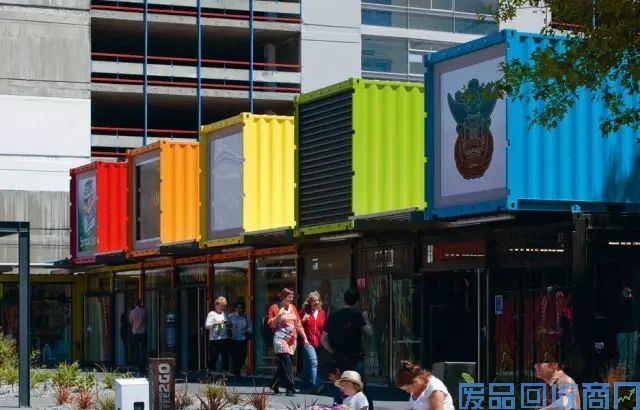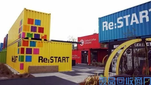 Re:start购物广场位于新西兰的基督城,曾经历地震,后期政府别出心裁用64个标准集装箱修建了一个临时的购物中心,并命名为“Re-start”。