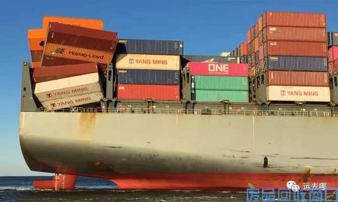 具体受损或落海集装箱数量未知,从照片上看,可能涉及涉及Hapag-Lloyd,ONE,阳明……预计船期将延误约4天,在离开威尔明顿港前,应该会有一个完全受损清单。