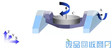但是旋转轴不与直线轴垂直(俯垂型工作台式)