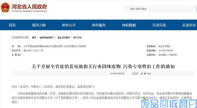 河北新闻网讯(记者段丽茜)日前,省土壤污染防治工作领导小组办公室印发通知提出,自即日起,在全省范围内开展废铅蓄电池污染专项整治,重点打击5类违法犯罪行为,以防治废铅蓄电池在收集、贮存、运输和处置过程中的环境污染。