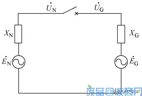 随着同步发电机单机容量不断增大,并列瞬间两相电路接通,合适的并列条件会使得原本两个稳定的运行状态向一个稳定的运行状态平滑过渡。操作不当则会产生危害性的冲击电流,致使发电机组绕组的电气损伤,甚至产生很大的电磁转矩,造成发电机轴系机械损伤。因此,并列冲击电流抑制一直是研究的关键技术之一,也是并列的基本要求。为保证发电机组并列稳定运行,一般限制冲击电流不超过发电机组的额定电流。