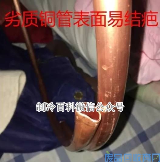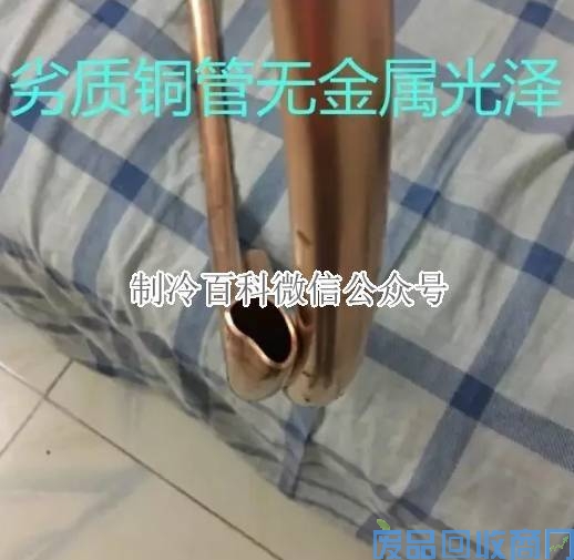 弯折铜管:优质的铜管弯曲后无折痕,不变形;劣质的铜管弯曲后易产生折痕,且容易挤压变形。
