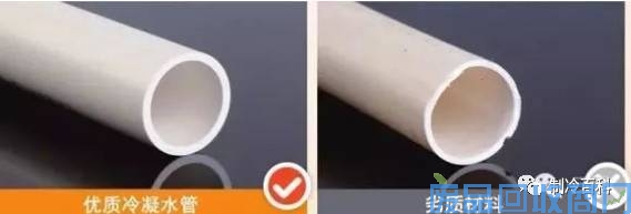 看表面:看水管表面光洁度,以及白度,好的冷凝水管内外颜色一致,呈现米白色,表面有油性亮光,颜色过分白有可能钙粉过多,偏黄可能PVC材质较差容易氧化耐候性较差。