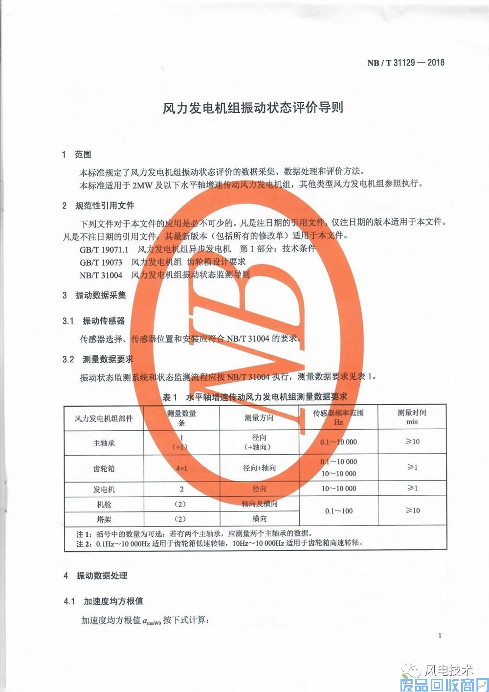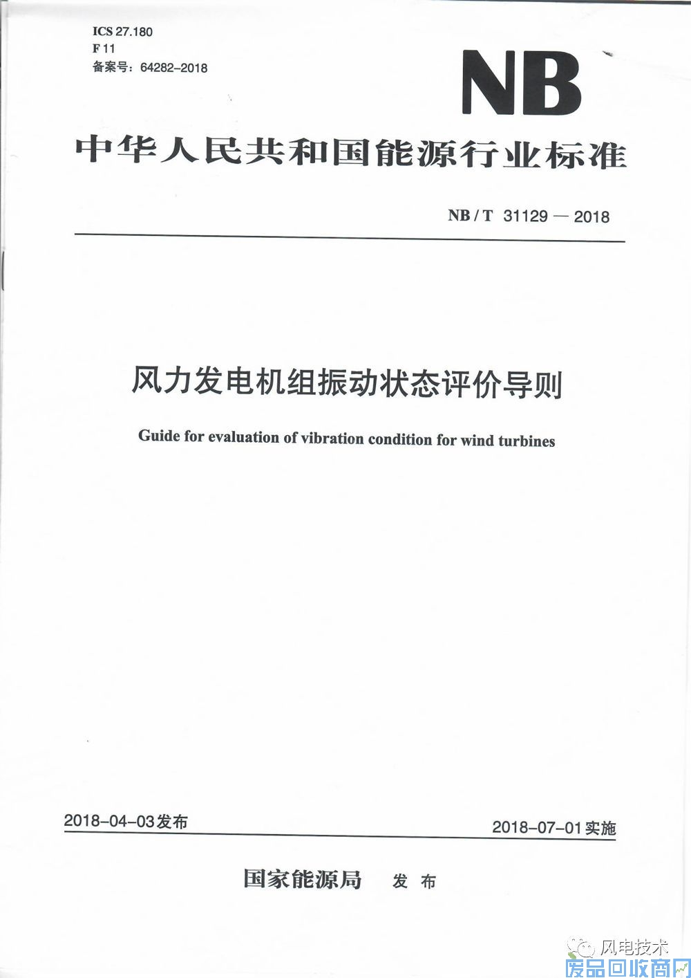 《风力发电机组振动状态评价导则》标准号NB/T31129-2118,已于2018年7月1号正式实施。北京英华达电力电子工程科技有限公司作为风机发电机组振动在线监测系统生产商有幸受邀为标准起草单位,参与了标准编写中的相关工作。