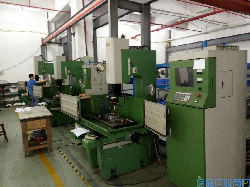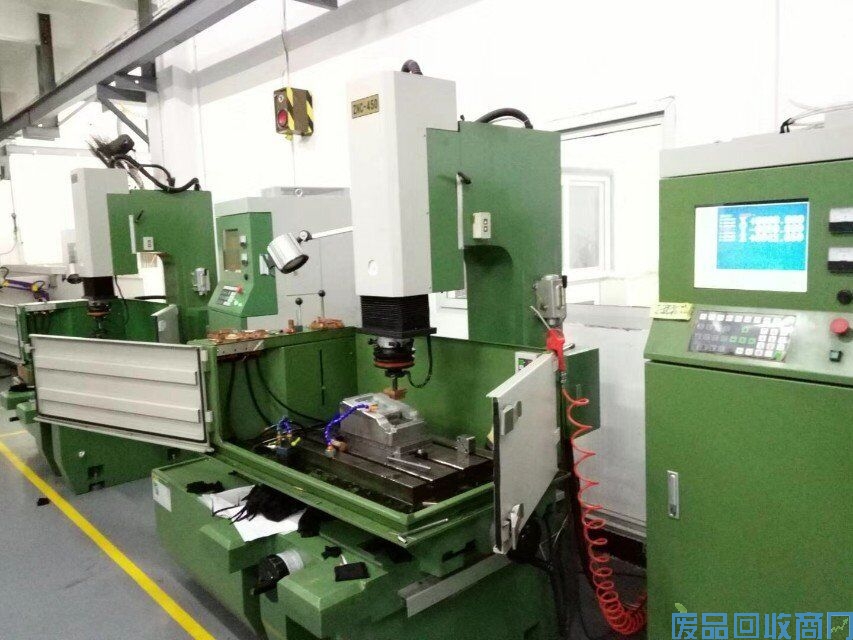 电火花机床设备在加工的的时侯我们把它的工具电极及工件分别连在脉冲电源的两极上,然后把它并浸在工作液里或者把工作液充入放电间隙,然后通过控制工具的电极向工件进给,当两电极间的间隙达到一定距离时,两电极上施加的脉冲电压将工作液击穿,产生火花放电,从而通过产生的电火花机床来对工件进行腐蚀加工。