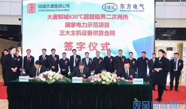 2018年11月23日,东方电气集团与中国大唐集团签署大唐郓城630℃超超临界二次再热国家电力示范项目合同,将为全球最高参数煤电项目提供三大主机设备。
