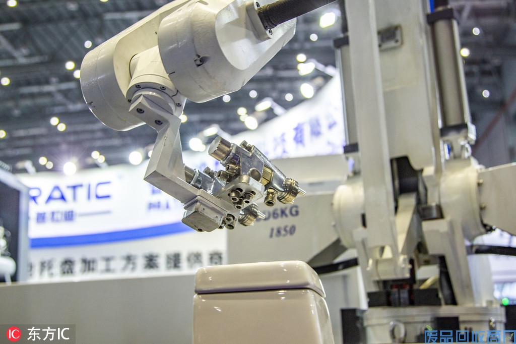 在上海CME中国机床展上,普拉迪数制科技展示的高端数控机床工作机械臂(图片来源:东方IC)