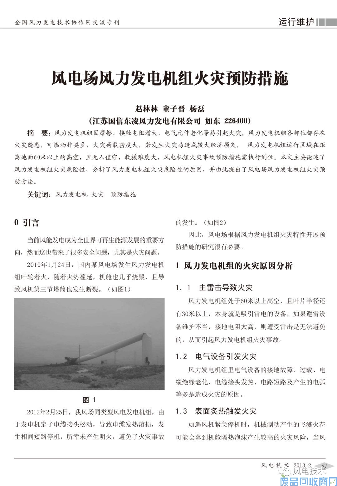 关键词:风力发电机 火灾 预防措施