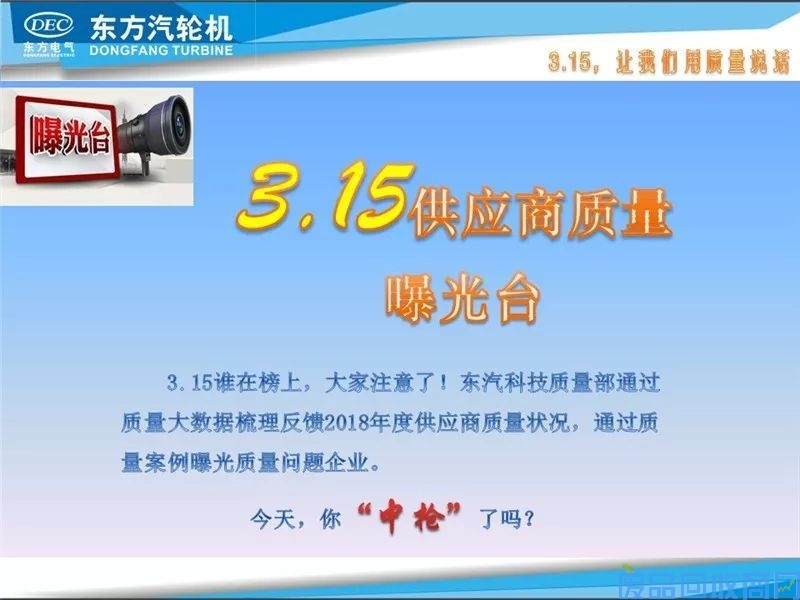 东方汽轮机发布“3.15”供应商质量问题上榜企业名单,你“中枪”了吗?
