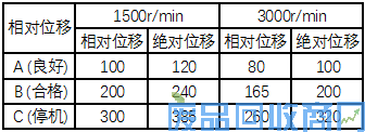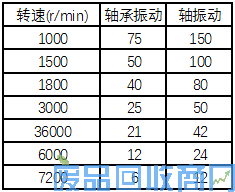国产200MW及以下机组,一般以测轴承为准,如测轴振动制造厂家无规定时,可参照下表执行。