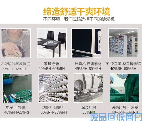 ◎选型注意事项--除湿机的除湿量和型号的选择,主要根据使用环境空间的体积、新风量的大小、空间环境所需的湿度要求等具体数值来科学计算。另外需要注意的是环境的相对湿度与环境的温度有关,温度越高,湿度蒸发越快,反之效果越差,因此在配置除湿机时,需要在专业人员的指导下进行选型,这样才能选到最为适合你的除湿机!