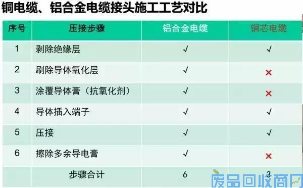 铝合金电缆接头工艺比铜电缆多出三个工艺,氧化层的有效去除和涂覆抗氧化剂是关键,国内施工水平,质量要求参差不齐,留有隐患。而且由于国内没有严格法律责任赔偿体系,最终损失后果实践中基本还是用户自己承担。