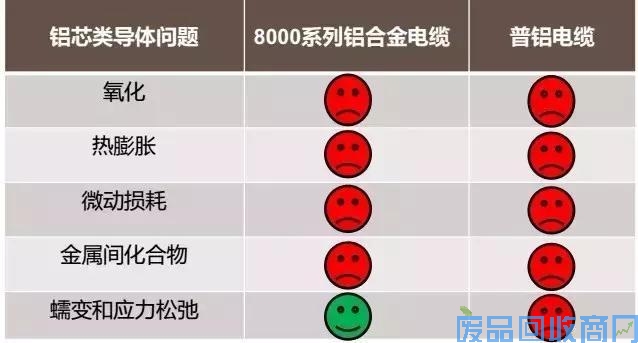 GB/T19292.2-2003标准表1注4中说明:铝合金耐腐蚀性差于普铝更差于铜,这是因为铝合金电缆加入了镁、铜、锌、铁元素,因此易于发生局部腐蚀如应力腐蚀断裂、层蚀、晶间腐蚀,而且8000系列铝合金属于易腐蚀配方,铝合金电缆增加了热处理工序,易造成物理状态不均匀,比铝电缆更容易被腐蚀。目前在我国应用的铝合金基本都是8000铝合金系列。
