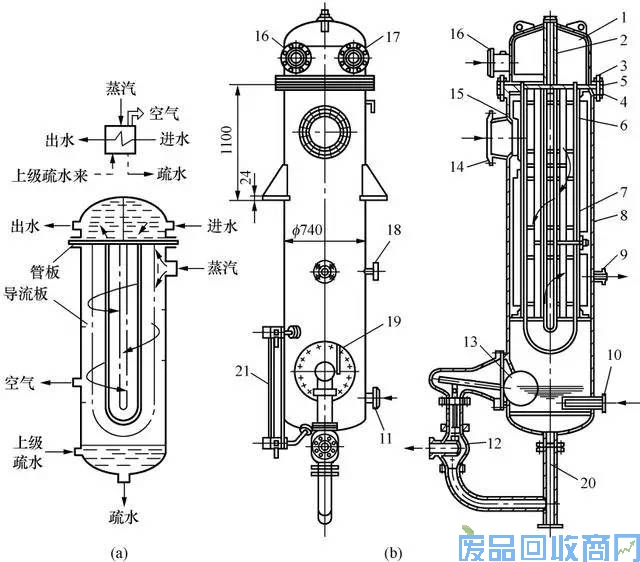 3) 在正常运行时,凝汽器还可以起到一级真空除氧器的作用,能够除去凝结水中所含有的气体,从而提高水的质量,防止设备腐蚀。