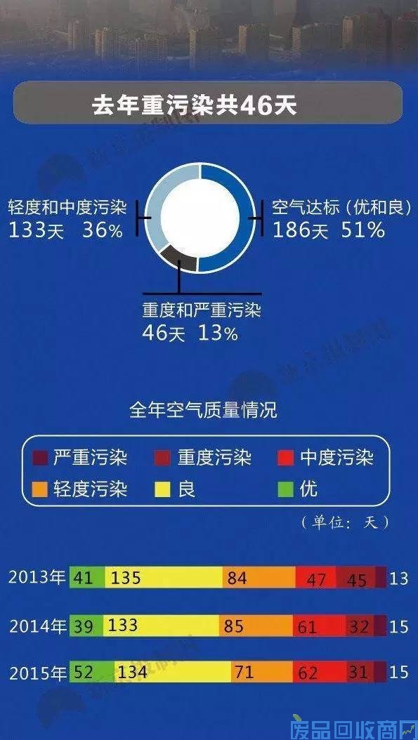 二、同时安装中央空调和新风系统是否必要。 很多人纠结是不是要同时安装中央空调和新风系统,纠结的原因有三个:一是预算不够多;二是对中央空调和新风系统的认知有盲区;三是不住在北京。 关于钱的问题,我们不做讨论。只是想说,几百万的房子都买了,多花一点钱,买个健康、舒适也挺好的。 之所以提到北京,是想说雾霾问题,《新京报》有一组2015年的空气质量数据: