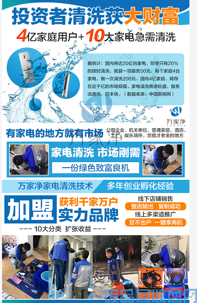 据记者了解,万家净本着“平等互利,共谋发展”的初衷,在加盟商的扶持方面在业界可以说是最优,不论你是,打工者,创业者,售后维修技师,还是大老板、投资人,只要你想加入进来都可以给予大力的扶持。从品牌、形象、营销、广告、培训、技术、创业奖励、区域管理、后期服务等等都可以获得最全面的支持。