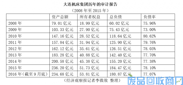 根据大连机床集团的历年财务报告和审计报告,至少从2008年开始,其负债率一直在70%-80%之间,有的年份一度还超过了80%。