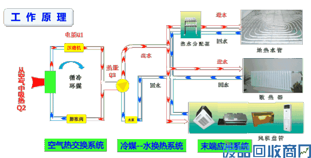 夏天“二联供”中央空调的室外主机产出冷冻水,经过循环系统在风机盘管进行热交换,将冷气吹出;冬天室外主机产出热水,通过热水在专用采暖管道内循环流动,加热地面装饰层,通过地面辐射和对流的传热使地面升温。