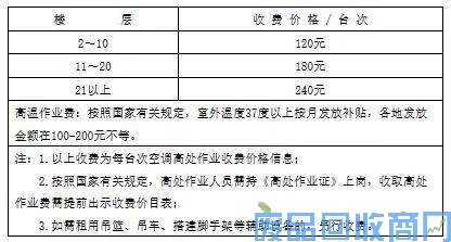 据中国家用电器服务维修协会最新发布的消息。目前行业已经确定2018年空调安装和维修室外高处作业/室外高温作业收费价格信息。收费标准如下: