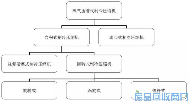 3)目前常用的压缩机主要有活塞式压缩机、涡旋式、螺杆式以及离心式压缩机。