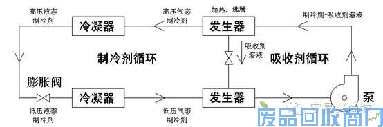 吸收式制冷和蒸气压缩式制冷一样,是利用液态制冷剂在低压低温下气化以达到制冷的目的。所不同的是蒸气压缩式制冷是靠消耗机械功(或电能)使热量从低温物体向高温物体转移;而吸收式制冷则靠消耗热能来完成这种非自发过程。