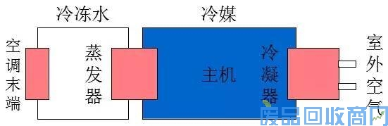 机组的输送介质通常为水。它通过室外主机产生出空调冷/热水,由管路系统输送至室内的各末端装置,在末端装置处冷/热水与室内空气进行热量交换,产生冷/热风,从而消除房间空调负荷。