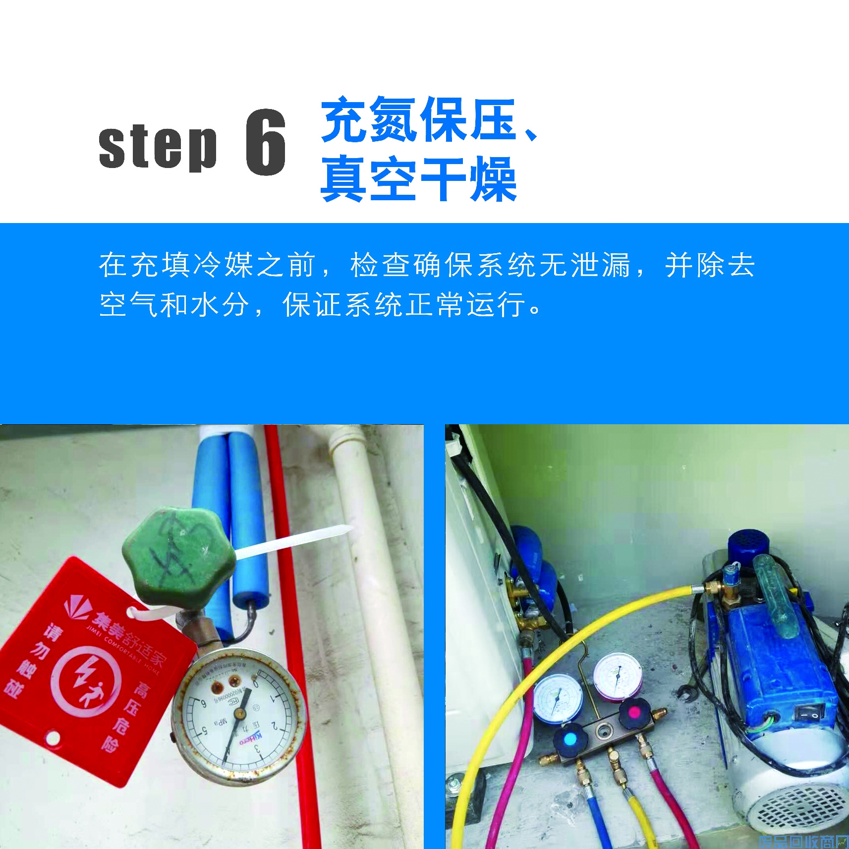在充填冷媒之前,检查确保系统无泄漏,并除去空气和水分,保证系统正常运行。