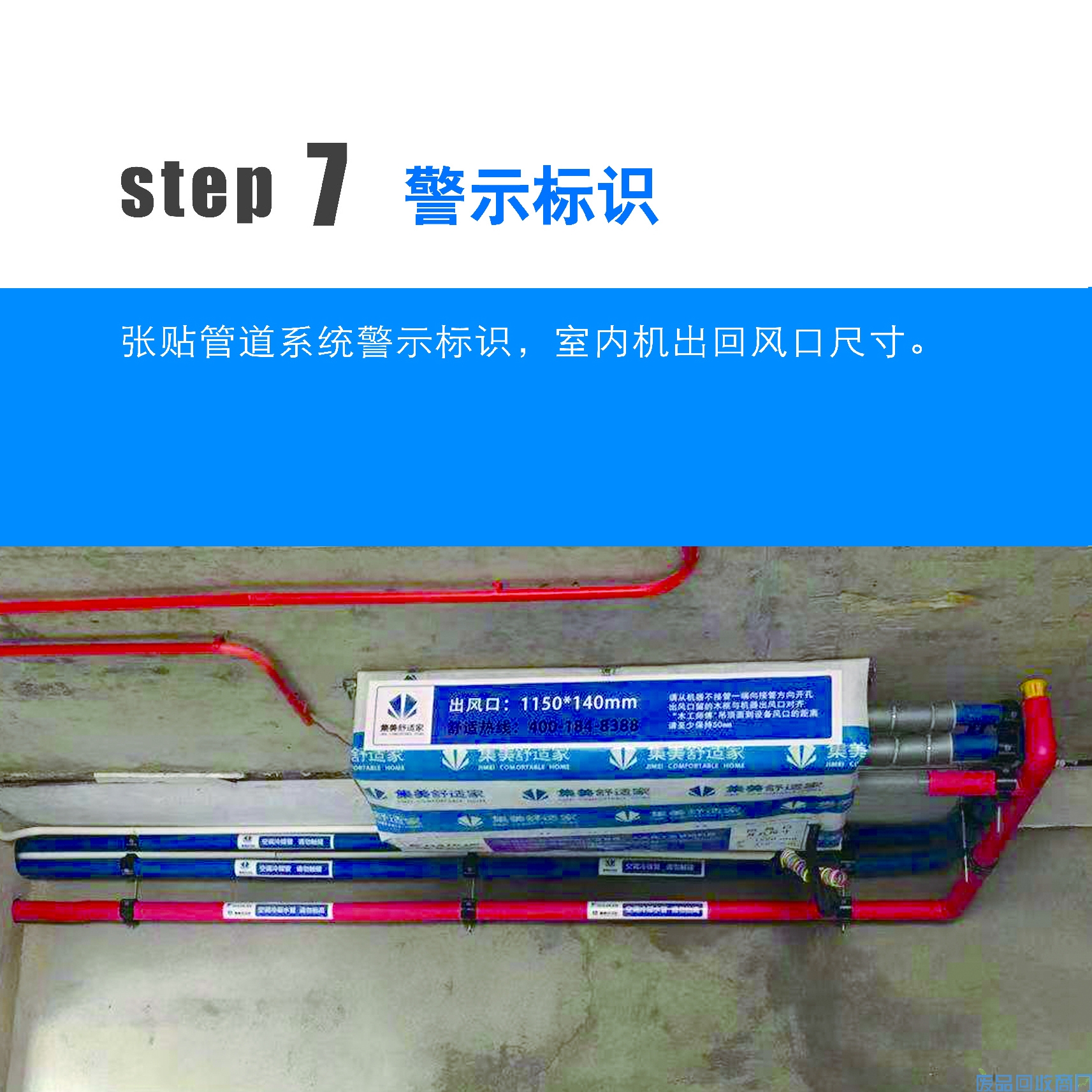 张贴管道系统警示标示,室内机出回风口尺寸。