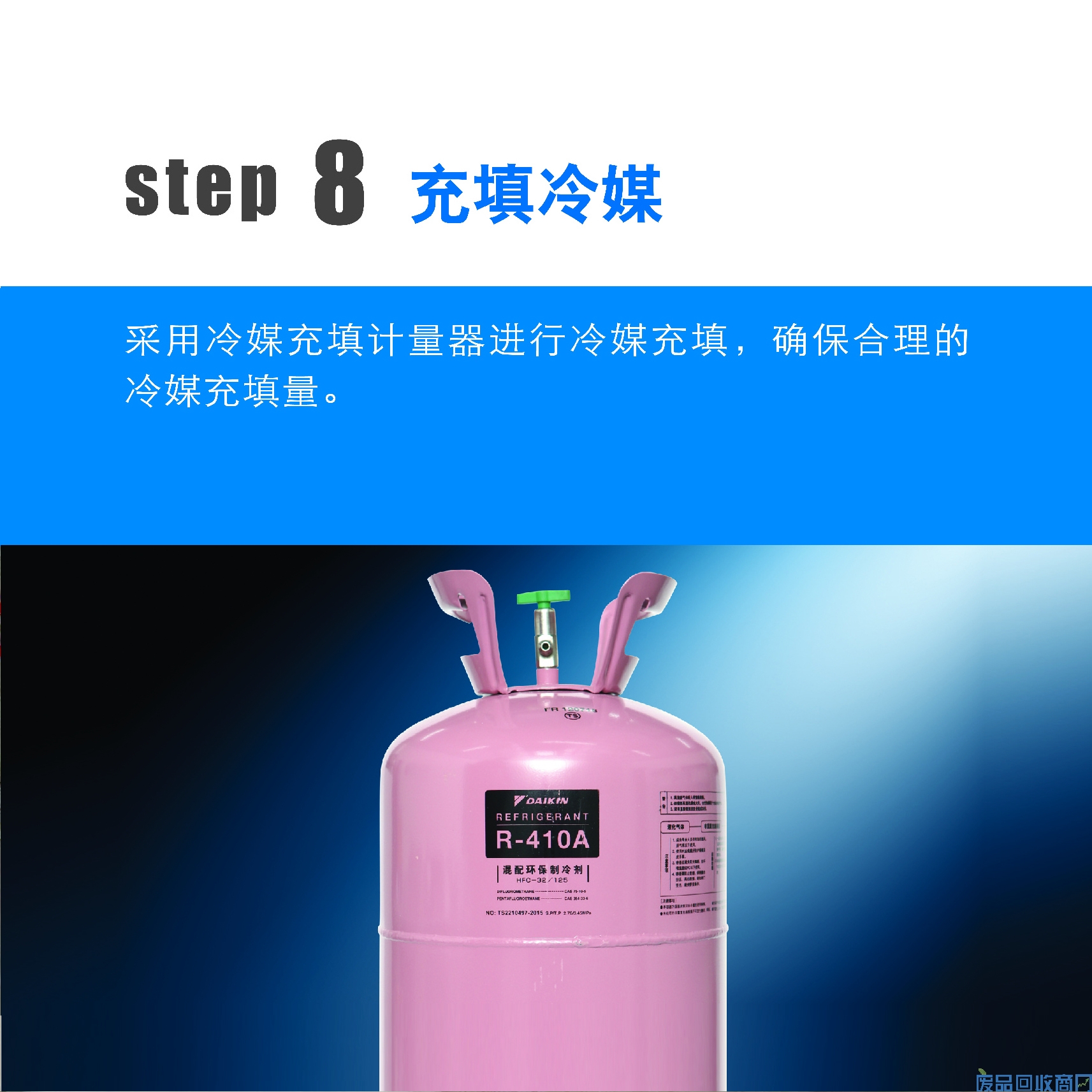 采用冷媒充填计量器进行冷媒充填,确保合理的冷媒充填量。