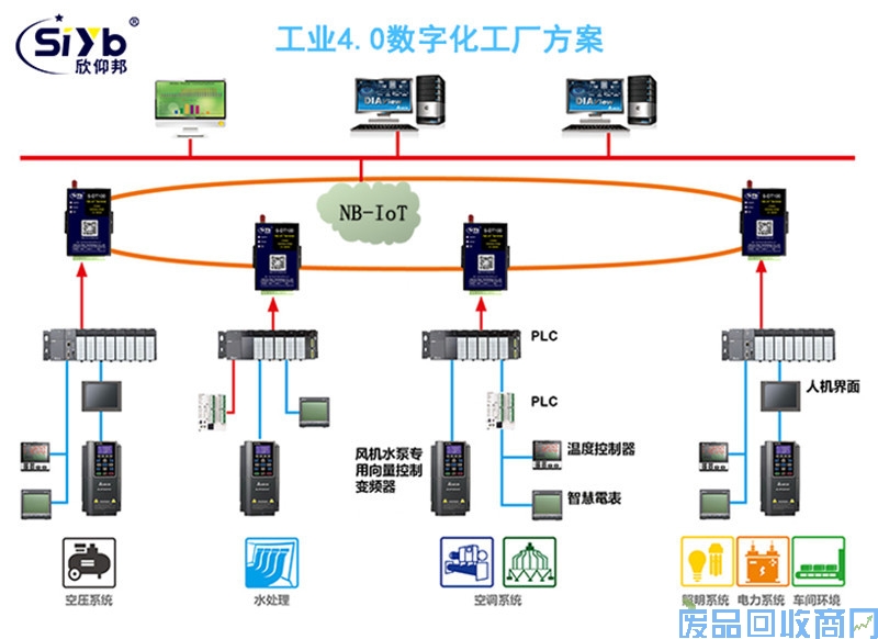 欣仰邦数控机床远程监测利用传感器技术在数控机床上安装传感器——温度传感器、电压传感器、压力传感器、速度传感器、位移传感器及激光传感器用来检测数控机床的运动轴、刀具以及其它床身内机械或电气部件的运行状态,及时地采集数控机床各设备的温度、振动、声音等信息,把检测到的各种状态数据转换成数字信号,传感器数据以RS485/RS232/IO口给数据传输终端LoRa/NB-IoT/DTU进行传输,服务器根据不同的状态信息实时记录和监视机床的运行状态。