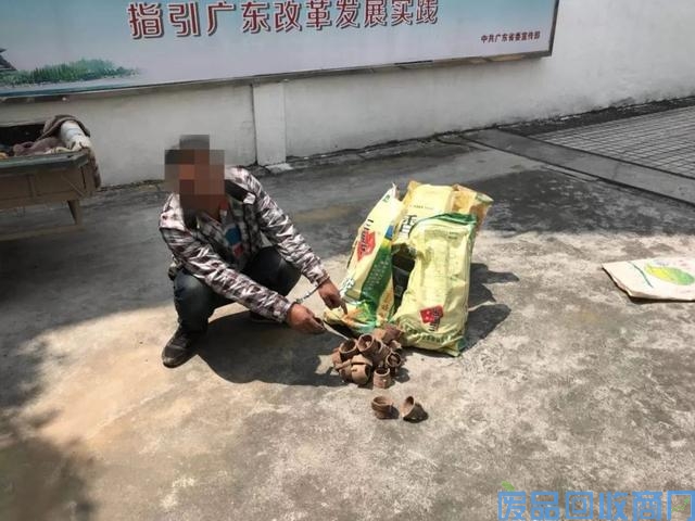 1小时后,民警成功在港口某废品收购站查获嫌疑男子姚某(43岁,河南驻马店人),并当场缴获被盗的272个碗扣。
