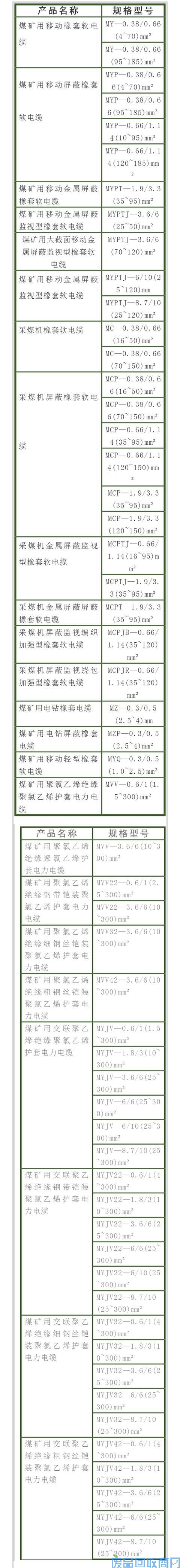 第二部分为使用特性代号,反映电缆所使用的场合。字母含义如下:C,采煤机用;D,低温环境用;M,帽灯用;Y,采煤设备(移动)用;Z,电钻用。