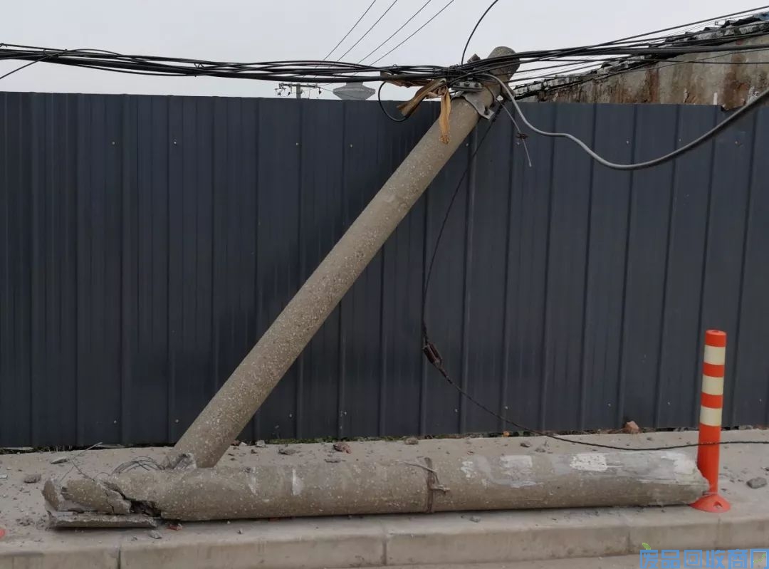 【突发】小记者“平”消息:今天中午在友谊西路往潘广路(老安村)方向,发生了一起厢式货车挂到通信电缆线,导致水泥电线杆断裂,还好没有人员受伤,导致路口比较拥堵,居民们出行可以选择其它路线。
